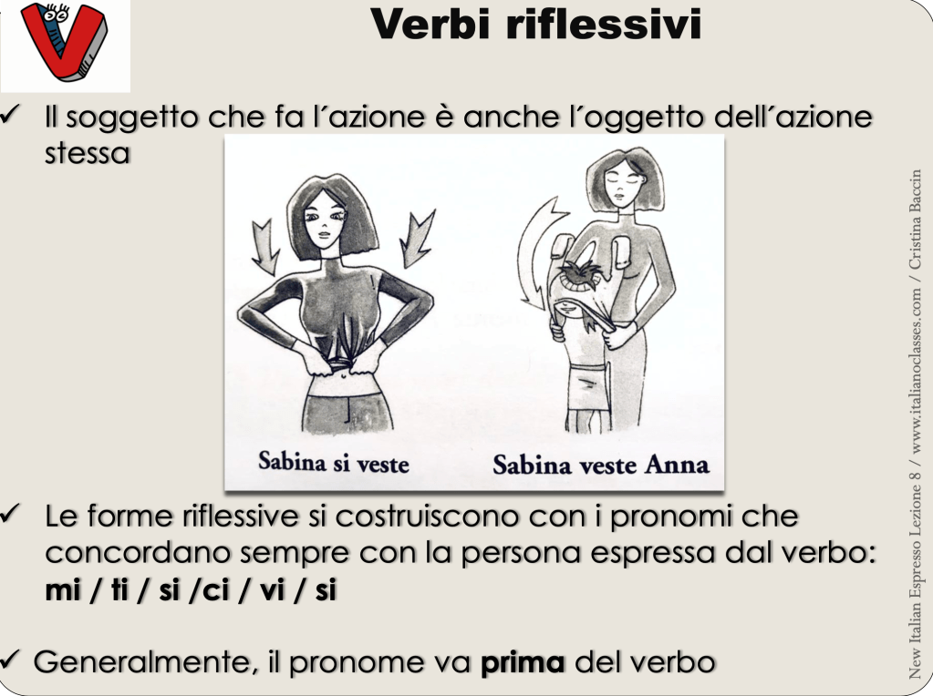 1. I love learning Italian with Cristina! She is organized and makes class fun by including games, pair practice, and encouraging our efforts to speak. The text book and workbook couldn’t be better.