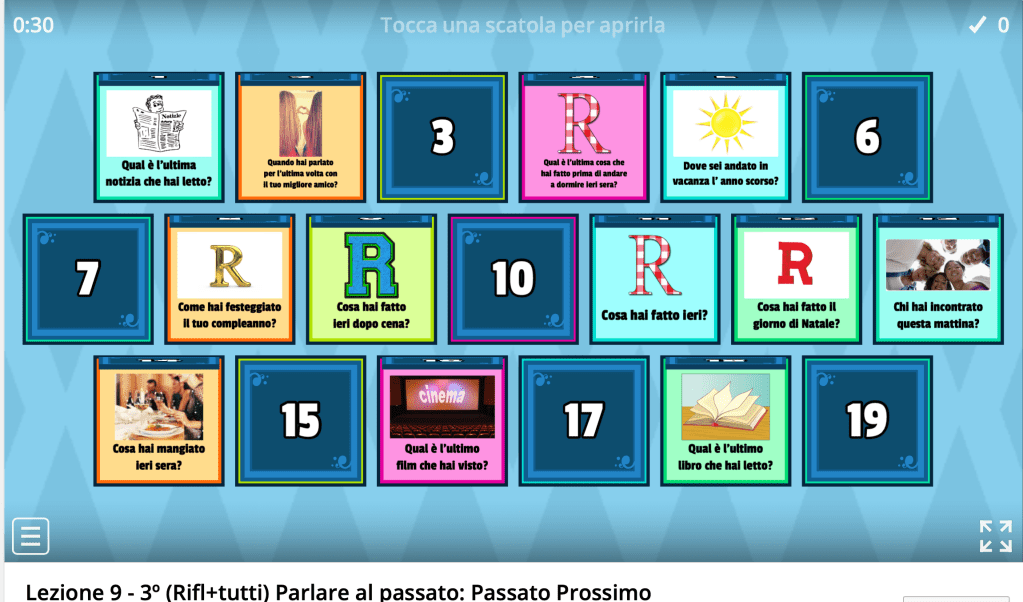 We just finished our Italian Beginning 4 course: it was a synchronous online course using the Zoom.us platform with many activities to do at home (when possible, we also worked in flipped classroom mode). It was an intense and collaborative experience with a group that has worked, played and smiled even in the face of difficulties and with different time zones. All of the students showed a beautiful generosity for cooperative learning and had enormous flexibility and patience. For me, it was a profound pleasure to prepare proposals, collaborative activities and games for such an active, curious and capable group… Thank you all! Cristina
