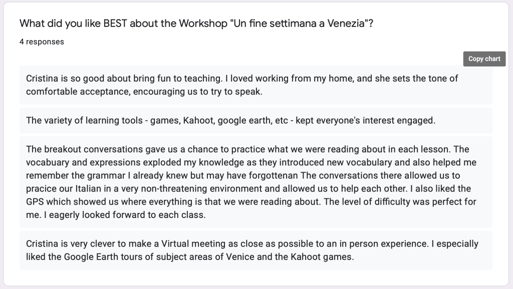 COURSE EVALUATION WORKSHOP VENEZIA 2021(Google form summary)