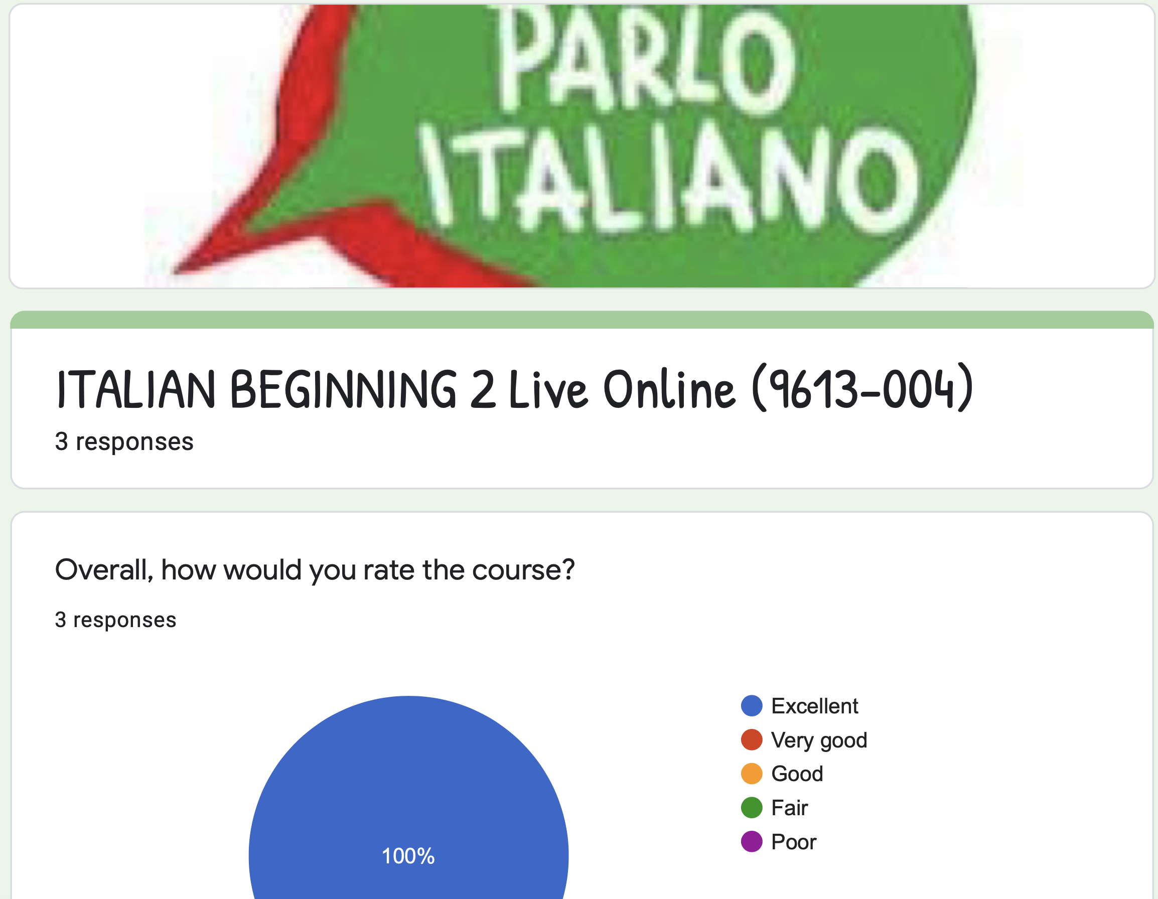 (N/A) Cristina’s energy and engaging teaching style! It really made for a great learning experience, ESPECIALLY considering it all had to be online. I thought she did a wonderful job at making the best of these challenges. I also really enjoyed the breakout rooms because they gave each of us a chance to practice in smaller setting and helped all of us students get to know each other.