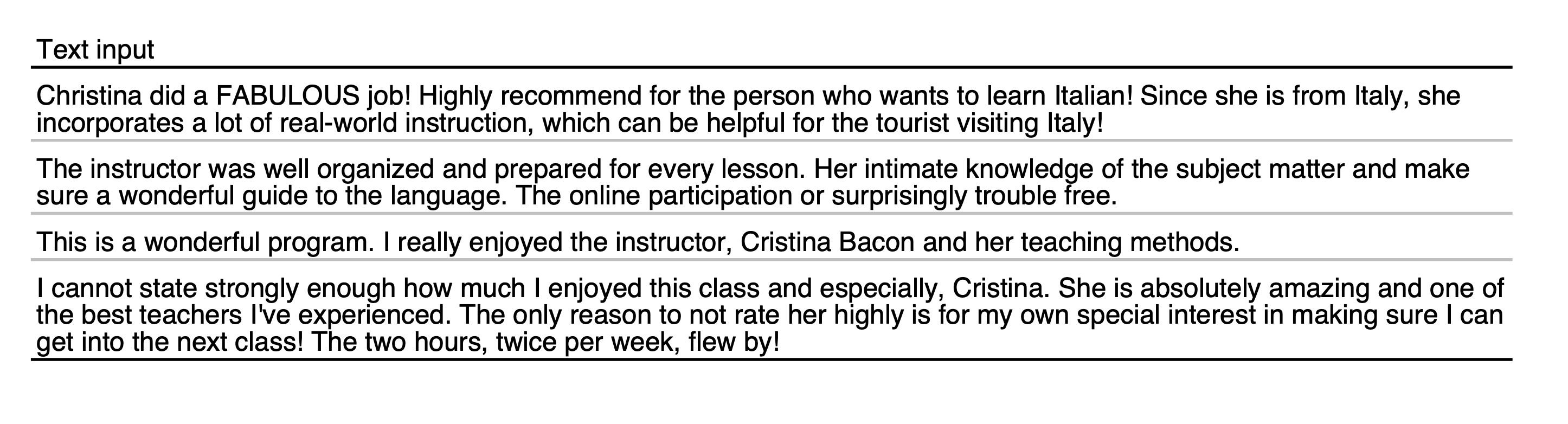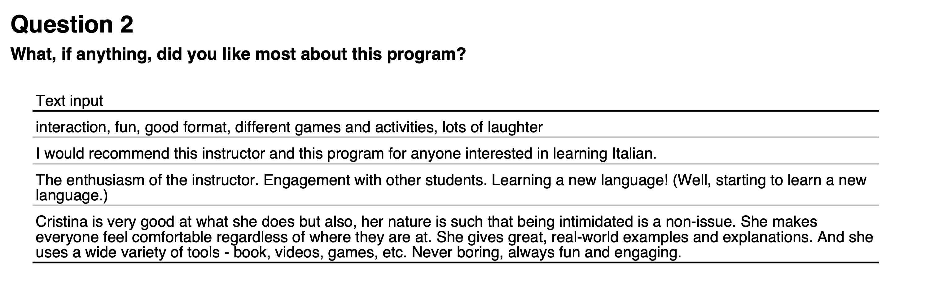 Testimonials from students – Course: Italian Beginning I LIVE ONLINE (9608-008) –(UNM Spring April-May 2022)