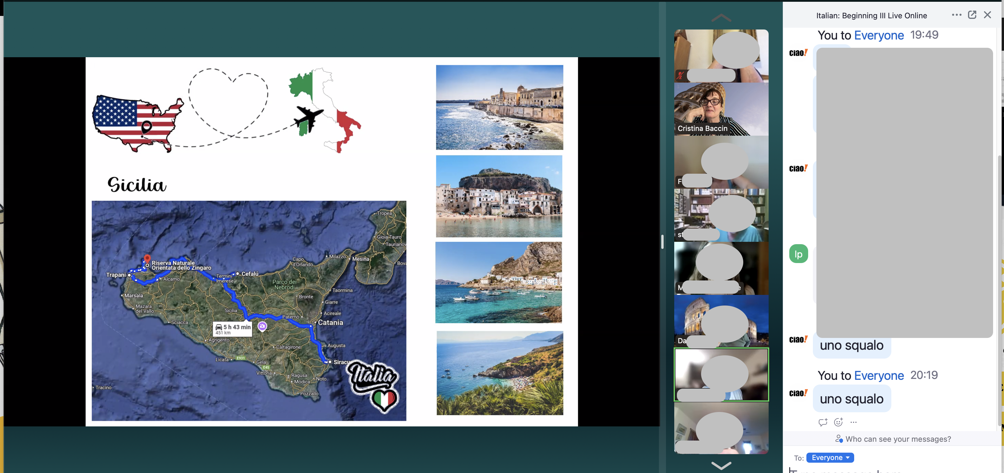 - Our classes are zoom classes and Cristina has included so many different interactive learning, review and practice strategies. We are never neither bored nor overwhelmed.