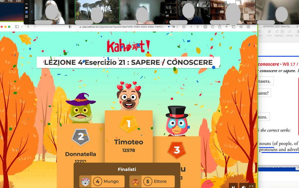 “Cristina Baccin is a well-organized, knowledgeable and enthusiastic teacher. Her visuals and interactive games reinforced the text and workbook lessons seamlessly.” (D.S., Retired Advertising Manager)