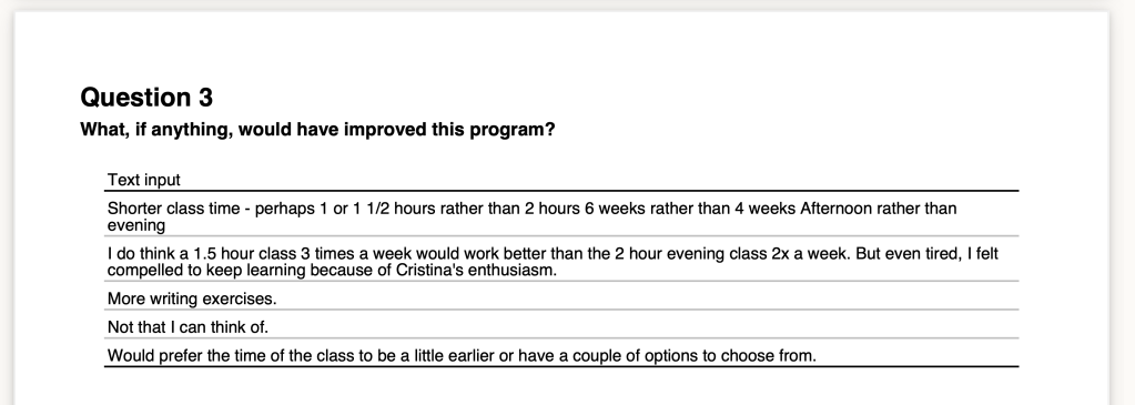 Testimonials from students – Course: Italian Beginning I LIVE ONLINE (9608-011) –(UNM-Ce, March-April, 2023)
